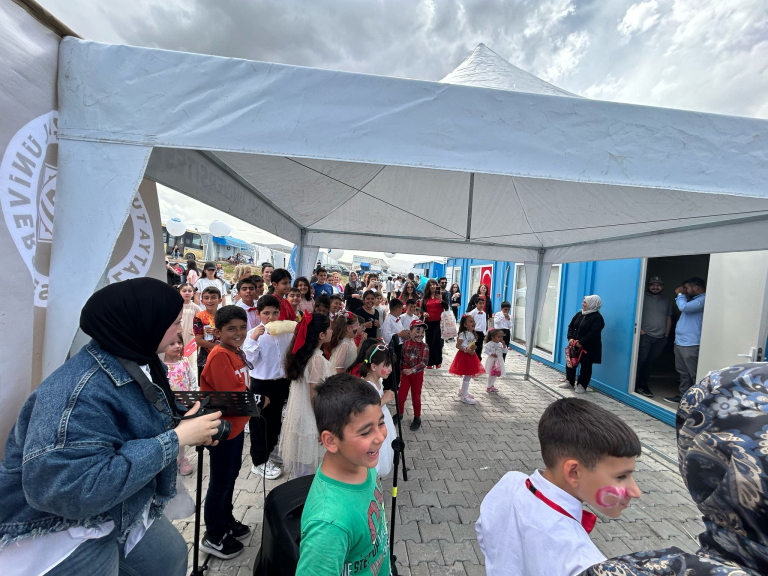 Etkinlik kapsamında, Dr. Öğr. Üyesi Olcay Korkmaz’ın şefliğini yaptığı Umutkent Konteyner Kent Çocuk Korosu sahne aldı. Resim Bölümü öğrencileri, Resim Atölyesi ile çocukların 23 Nisan bayram coşkusunu kağıtlara taşımasına vesile oldu. Sahne Sanatları Bölümü öğrencileri ise, çocuklara temizliğin ve düzenli beslenmenin önemini anlatan Mis ile Pis isimli çocuk tiyatrosu oyunu ile çocuklara unutulmaz anlar yaşattı. Kutlama programında ayrıca palyaço gösterileri ile çeşitli ikramlar çocuklara keyifli anlar yaşattı; etkinlik boyunca renkli görüntüler ortaya çıktı. Etkinlik sonunda ise çocuklara yaş gruplarına uygun kitaplar hediye edildi.