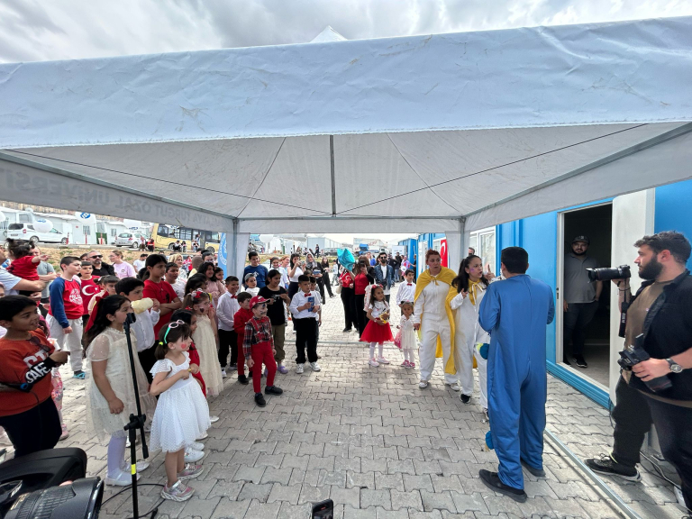 Sanat Tasarım ve Mimarlık Fakültesi (STMF) 23 Nisan Ulusal Egemenlik ve Çocuk Bayramı’nı “Umutkent Konteyner Yaşam Alanı”nda yaşayan çocuklarla birlikte kutladı. 23 Nisan Çarşamba günü gerçekleşen kutlama programına Fakülte Dekanı Prof. Dr. Ersan Çiftci, Dekan Yardımcıları Doç. Dr. Ebru Doğan ve Doç. Dr. Ferdi Karaönçel, Resim Bölümü’nden Doç. Dr. Döndü Tülay Özkul ile Arş. Gör. Mustafa Yasin Aydoğan, Görsel İletişim Tasarımı Bölümü’nden Dr. Öğr. Üyesi Yasemin Keskin Yılmaz Müzik Bölümü’nden Dr. Öğr. Üyesi Olcay Korkmaz ile Öğr. Gör. Harun Barış, Sahne Sanatları Bölümü’nden Dr. Öğr. Üyesi Tuna Taşdemir, Dr. Öğr. Üyesi Atakan Aslan, Arş. Gör. Sündüz Adilak katıldı.